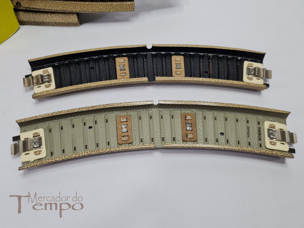 Comboios Marklin - caixa antiga com linhas curvas metal Ref. 5100, caixa de 10 unidades, mas esta caixa só tem 9 unidades, sinais de uso. Com caixa original