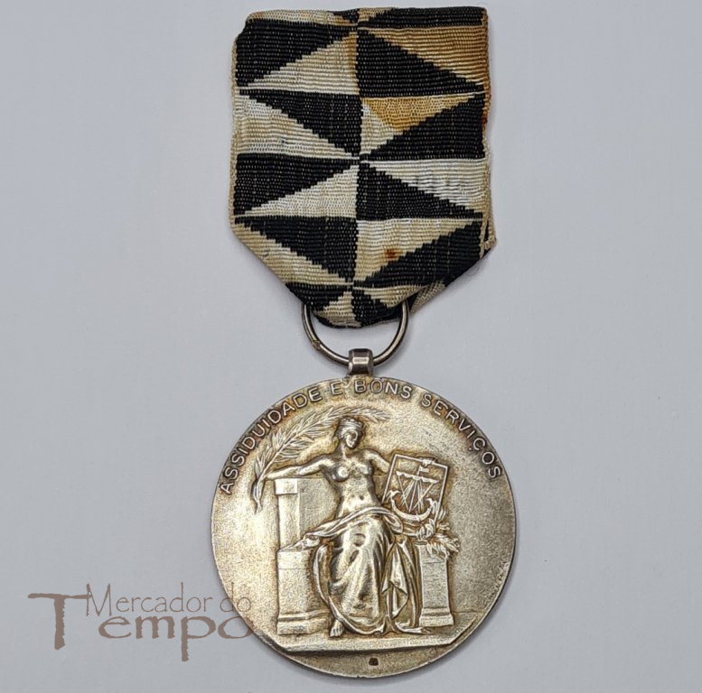 Medalha em prata de Assiduidade e Bons Serviços da Camara Muinicipal de Lisboa. Diam.- 3,5cm. Apenas apresenta a marca de prata do fabricante.