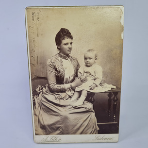 Fotografia CDV do Atelier A.Fillon com a Duquesa D.Amélia de Bragança e o filho, o Principe Real ...