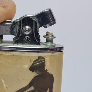 Isqueiro vintage Spark, com silhuetas femininas. Nunca teve uso, mas não funciona, pois não abre totalmente.