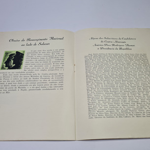 O Candidato Nacional - Almirante Américo Thomaz, edição da União Nacional.Com 16 páginas.