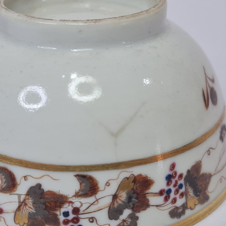 Taça e Pires em porcelana Companhia das Indias Sec.XVIII com monograma, decoração Parras e Uvas. ...
