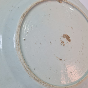 Prato raso oitavado em porcelana da China Azul e Branca, dita "Cantão". Reinado Jiaqing 1796 -1820, finais do Sec.XVIII, inicios do Sec.XX. Prato com formato oitavado, com pequeno defeitos de cozedura. Diam. 21,5cm.