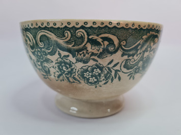 Malga/Tigela da Fábrica de Sacavém, Gilman. Com alguma gordura entranhada. Com decoração floral verde. Alt.- 8,5cm; Diam.- 14cm.
