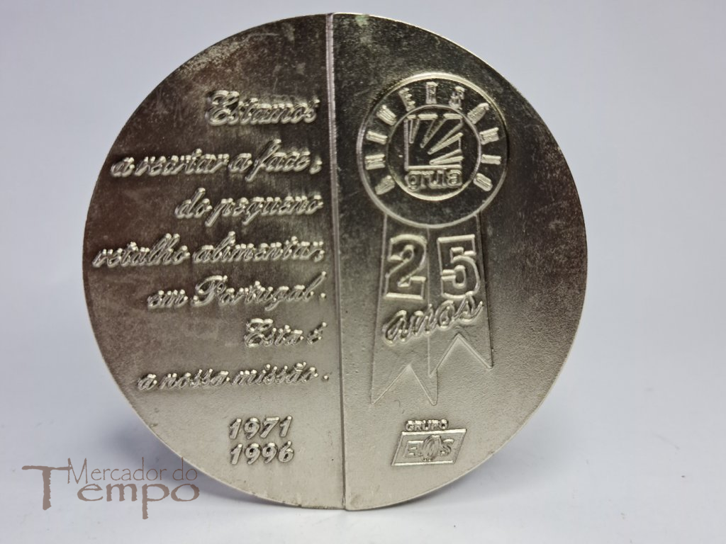 Medalha em bronze prateado com escultura de Interior de Mercearia antiga. Numerada – 238/1000. Diam.- 8cm.