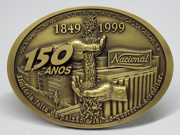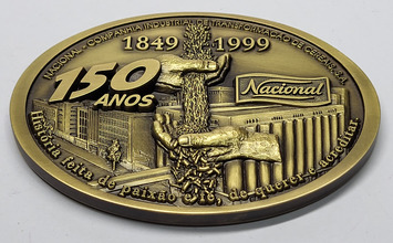 Medalha em bronze comemorativa dos 150 anos da Nacional, 1849 - 1999. Dim.- 10 x 7,5cm.