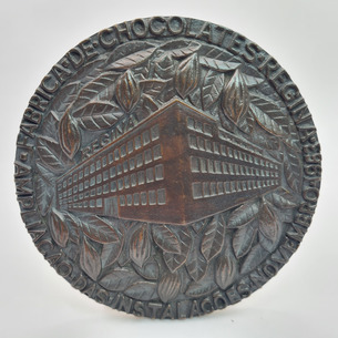 Grande medalhão em bronze Fábrica de Chocolates Regina, ampliação das instalações, 1963. Diam.- 1...