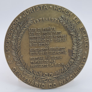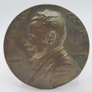 Medalha em bronze Afonso Costa , Assinada: João da Silva. Diam.- 7cm.