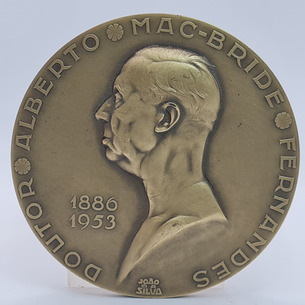 Medalha em bronze com o busto do Dr Alberto Mac-Bride Fernandes, assinada: João da Silva, datada ...