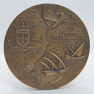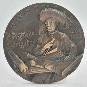 Medalhão em bronze comemorativo da morte do Infante D. Henrique, datada de 1960. Assinada: João d...