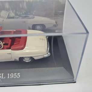 Miniatura 1/43 Altaya Mercedes 190 SL - 1955. A tampa acrilica com risco mais visivel.