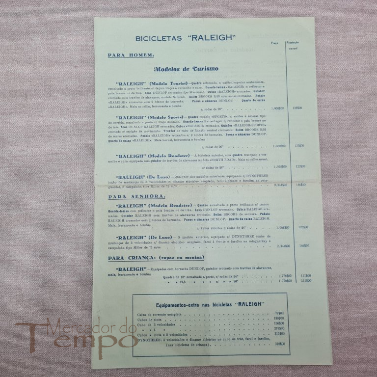 Invulgar Tabela de preços das Bicicletas Atlantic, Imperial e Raleigh, datada de 1965. Dimensão f...