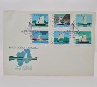 2 Envelopes 1º dia de circulação Barcos da Costa Portuguesa datado de 1971 e Barcos dos Rios Portugueses datado de 1981. O envelope da Costa Portuguesa tem marcas nos cantos de ter estado encaixado num album com este sistema de encaixe. O envelope dos Barcos dos Rios Portugueses tem o canto superior esquerdo com um pequeno vinco.