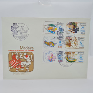 Conjunto de 5 Envelopes Primeiro dia da Madeira e Vinho do Porto, composto por, Europa CEPT 81, Evocação da Primeira Emissão da Madeira 1868-1980, Madeira Lubrapex 1968, Conferência Mundial de Turismo 1980 e Vinho do Porto 1970.
