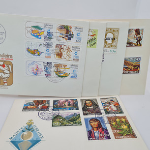Conjunto de 5 Envelopes Primeiro dia da Madeira e Vinho do Porto